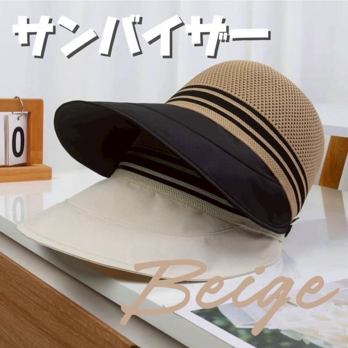 - ゴルフ サンバイザー 帽子 UVカット 通気性 紫外線カット つば広 ベージュ