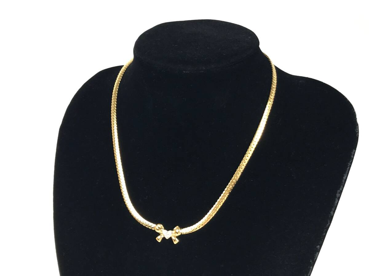 > ニナリッチ NINA RICCI リボン ハート ラインストーン ヘリンボーンチェーン ネックレス ゴールドカラー YAS-12556
