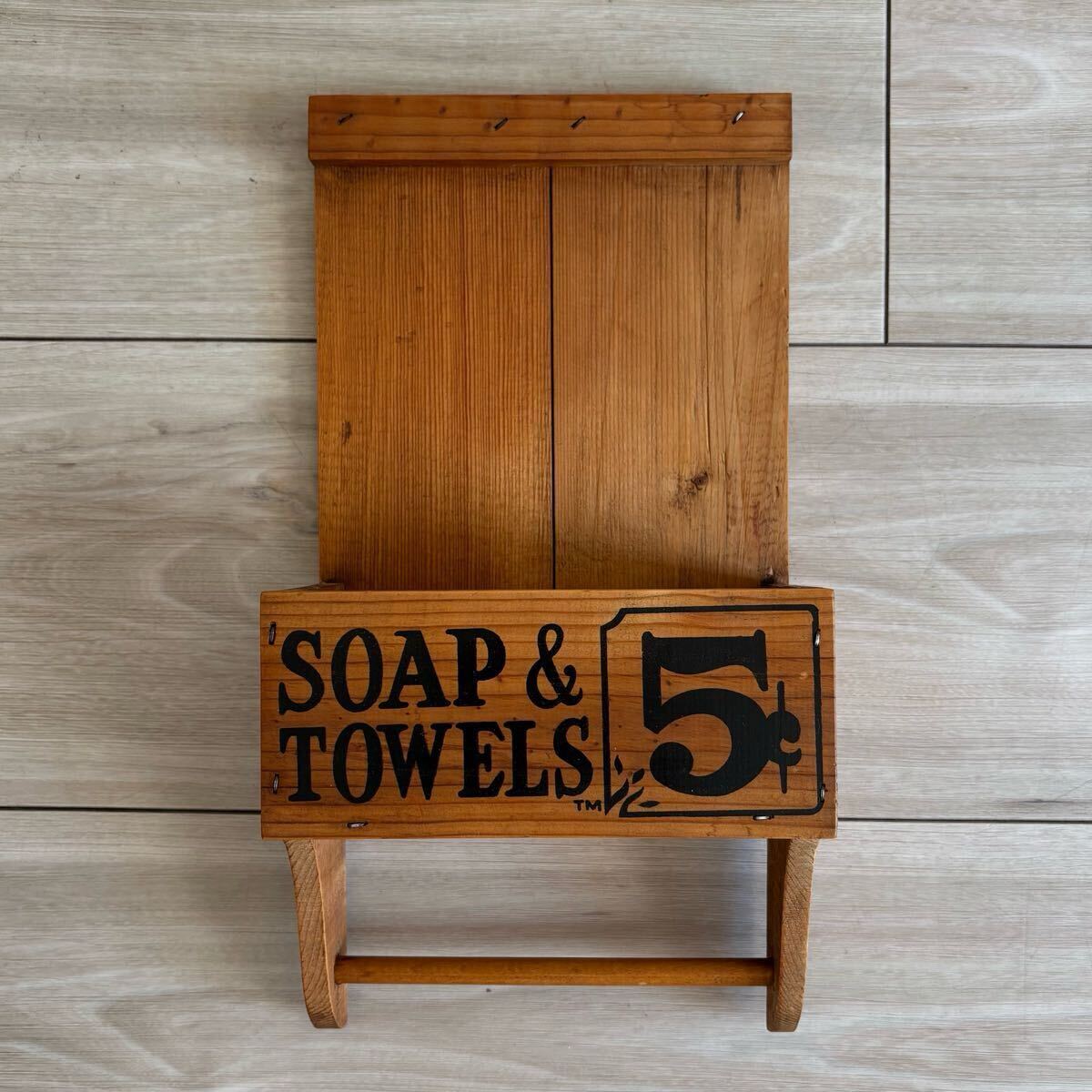 - アメリカビンテージ ウッド 壁掛けソープホルダー&タオルハンガー