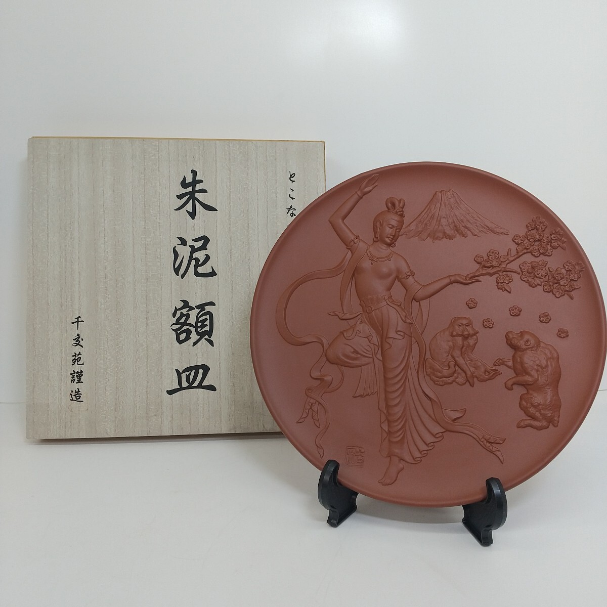 - 1023 中古美品 飾り皿 山口吉旺 とこなめ焼 常滑 木箱入り 大皿 美術品 朱泥