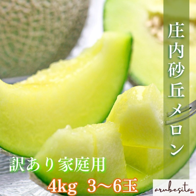- 1円~■予約■山形県産 庄内砂丘 青肉メロン 家庭用訳あり 約4kg 3~6玉