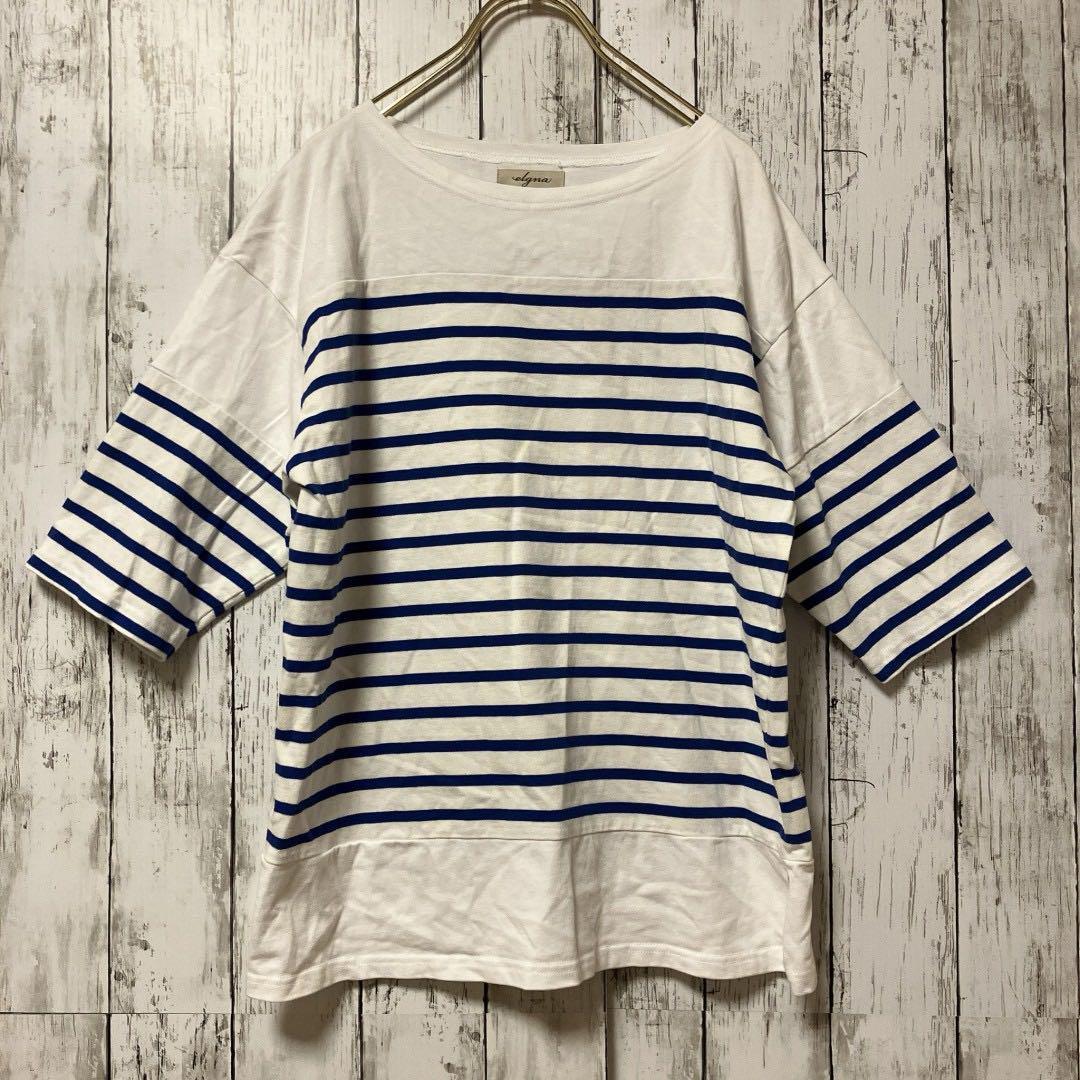 - ボーダー柄半袖トップス【36】ブルー×ホワイト カジュアル 定番 シンプル 古着