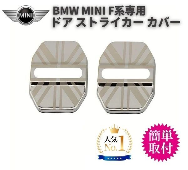 > 2個セット ドア ストライカー カバー BMW MINI ミニ クーパー F系専用 ドアロック ステンレス製 鏡面仕上 ロゴなし カスタム シルバー C055