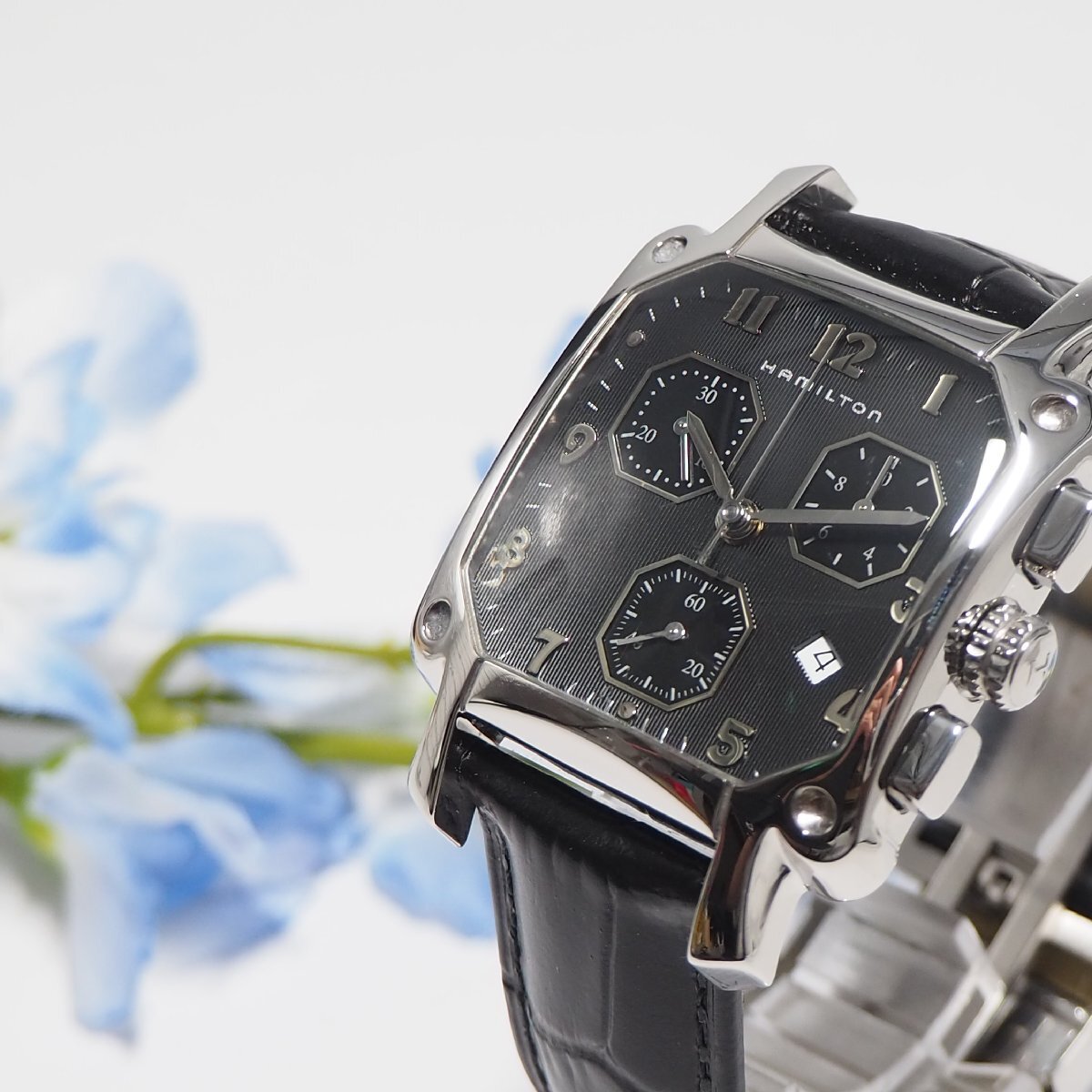 - ハミルトン Hamilton ロイド クロノグラフ デイト スクエア 革ベルト メンズ 腕時計 F985 中古
