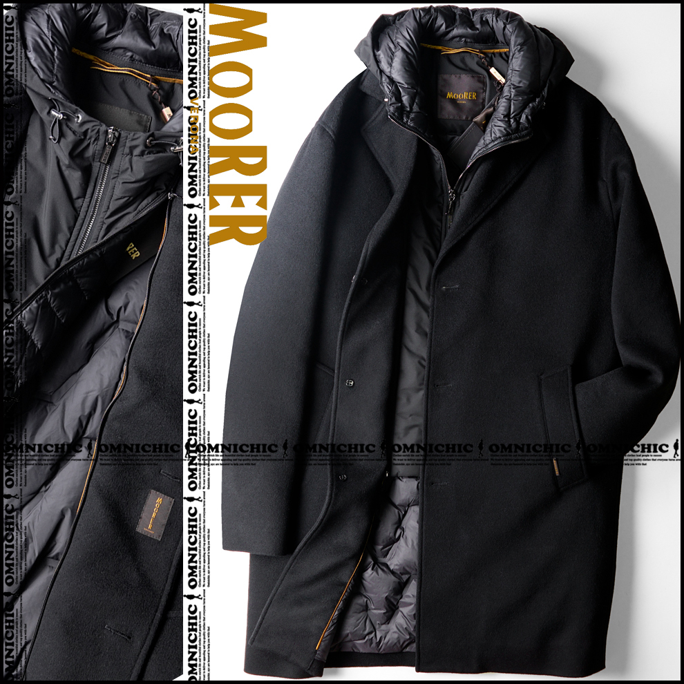 > 贅沢カシミヤ混ロング丈■新品32.5万【MOORER】ムーレー/伊製/PINTORI-LE/ウールカシミヤブラックチェスターダウンコート50/フード脱着可