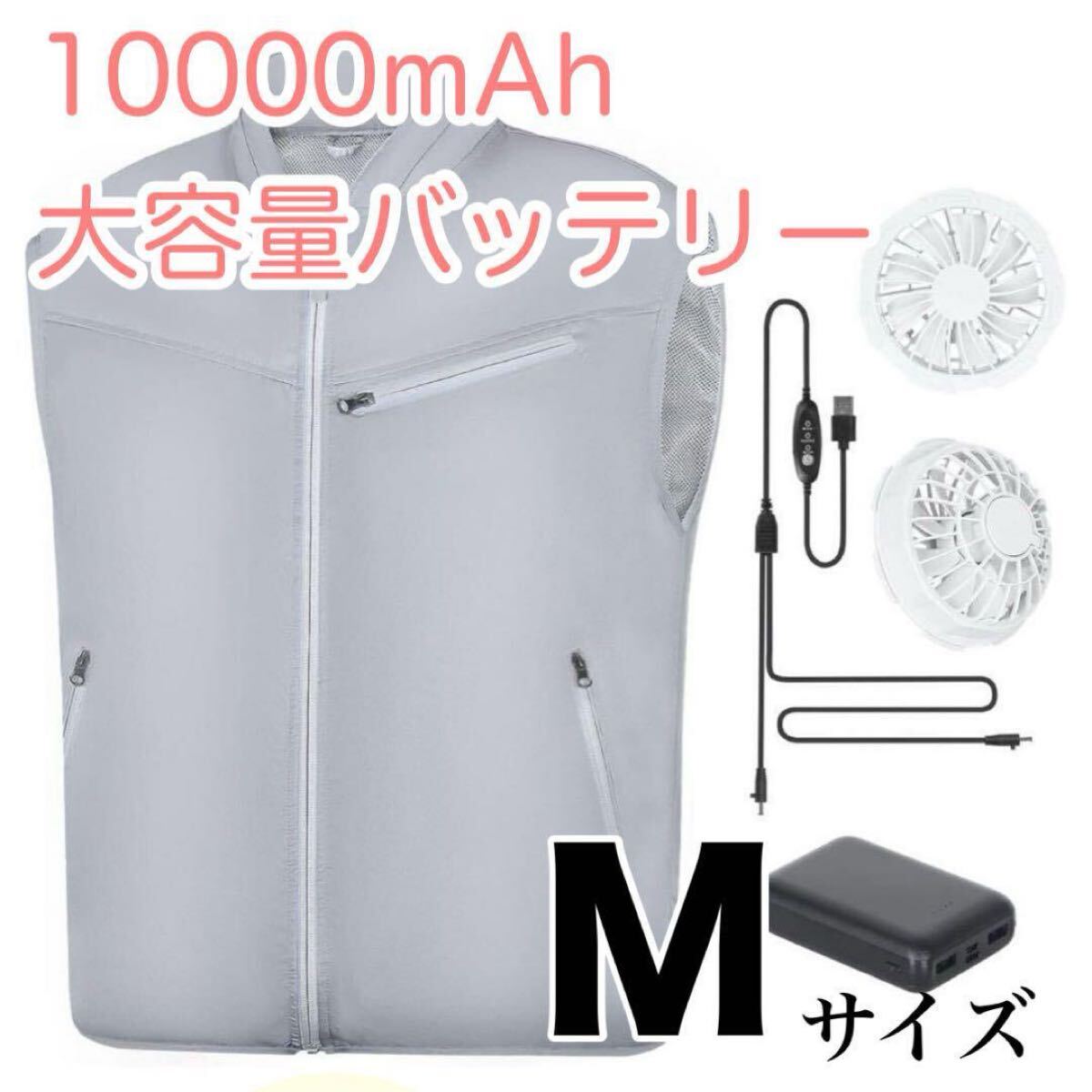 - 空調ベスト 空調服 Mサイズ 熱中症対策 10000mAh グレー 9羽根 空調服ファン 空調服扇風機 ファン 丸洗い可能