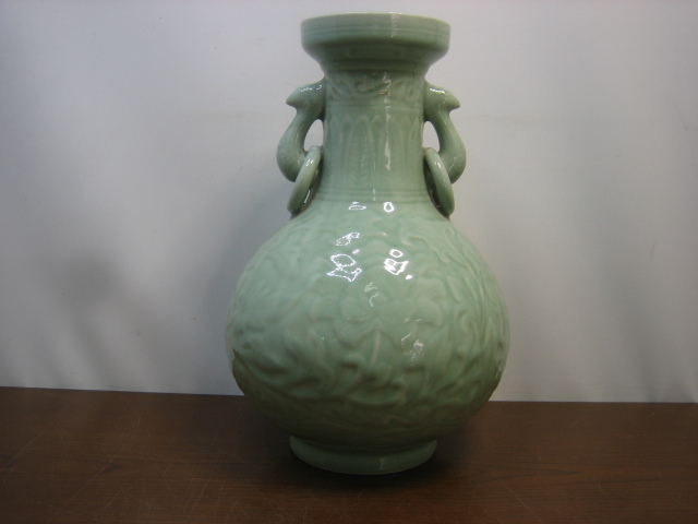 - ◆中国美術 龍泉 青磁 双耳 花瓶 壺 古美術 古玩◆菅-BLS