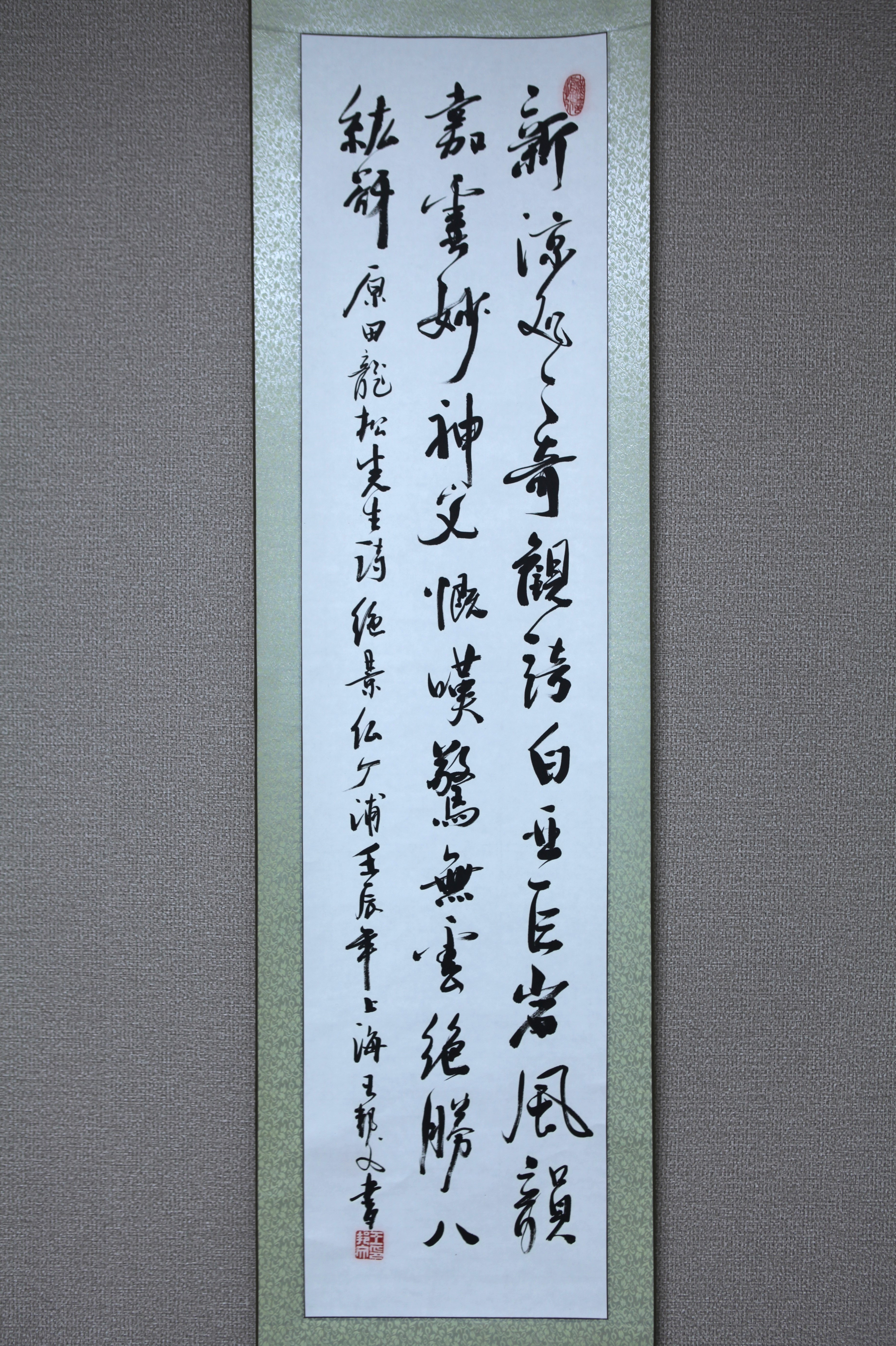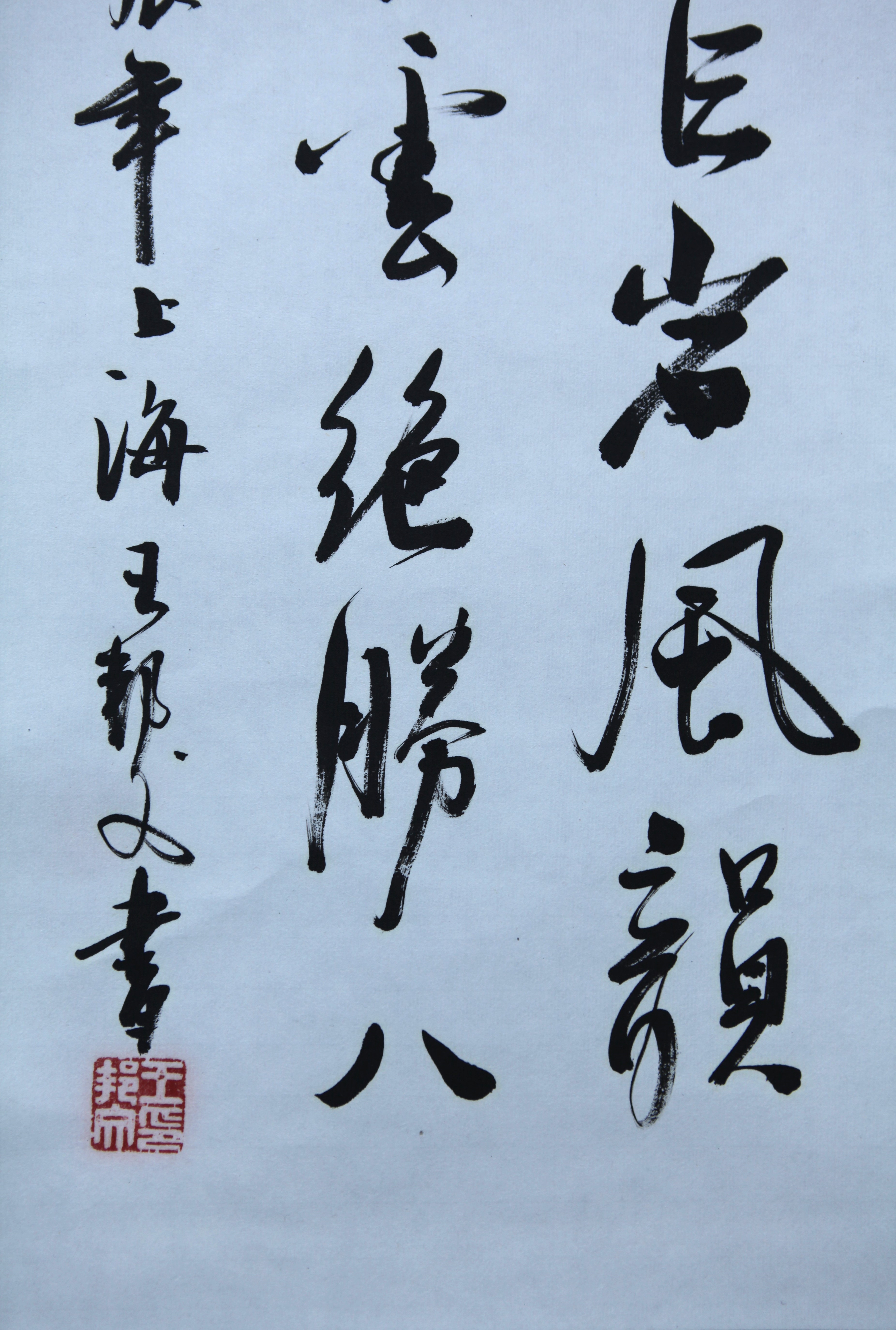 - 【真作】【風車】 王邦文 「七絶漢詩」◎肉筆紙本◎上海書画吟道会会長