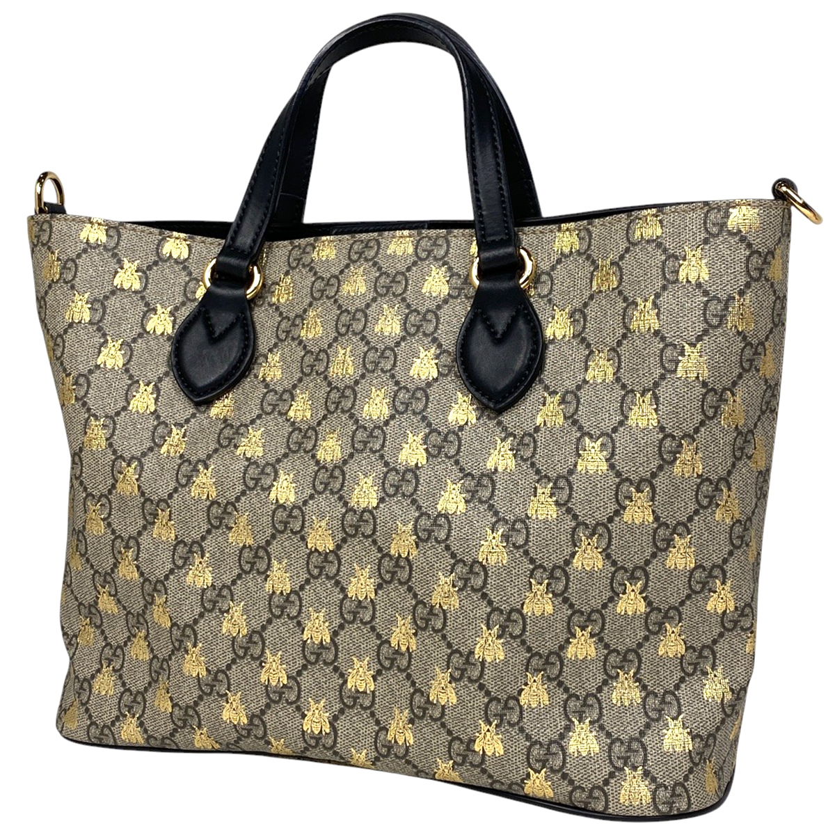 - グッチ GUCCI GG柄 トートバッグ 2WAY ショルダーバッグ ビー GGスプリーム コーティングキャンバス ベージュ ブラック 473887 レディ 中古