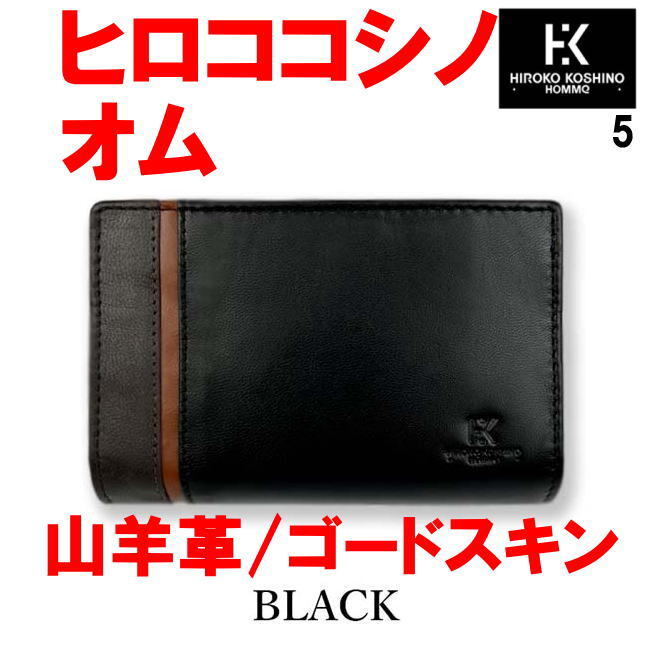 - ブラック ヒロコ コシノ オム L字 ラウンド hks-5 折財布 山羊革 ゴードスキン