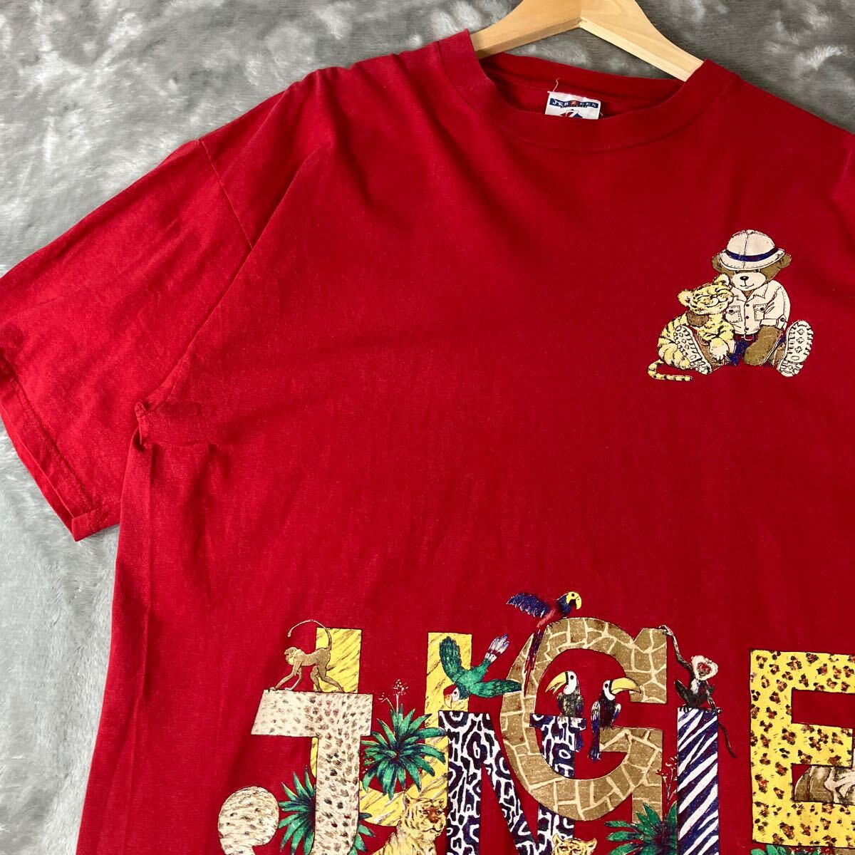 > USA製 90s 00s ヴィンテージTシャツ ジャングル サファリパーク アニマルプリント アニマルTシャツ 両面プリントTシャツ 赤レッド XL