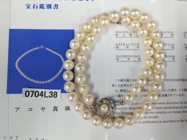 - 0704L38 本真珠 あこや ネックレス 宝石鑑別書付 約44g
