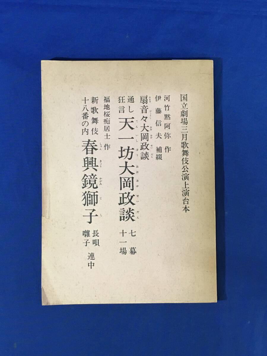 > AH347イ●昭和47年 国立劇場3月歌舞伎公演上演台本 「天一坊大岡政談/春興鏡獅子」 河竹黙阿弥/福地桜痴 作