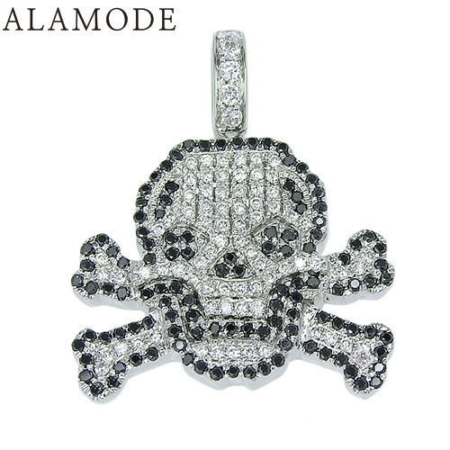 - D0.62 ダイヤモンド ドクロ トップ K18 ホワイトゴールド WG スカル ブラック黒 ユニセックス 41100081471【アラモード】【特集】