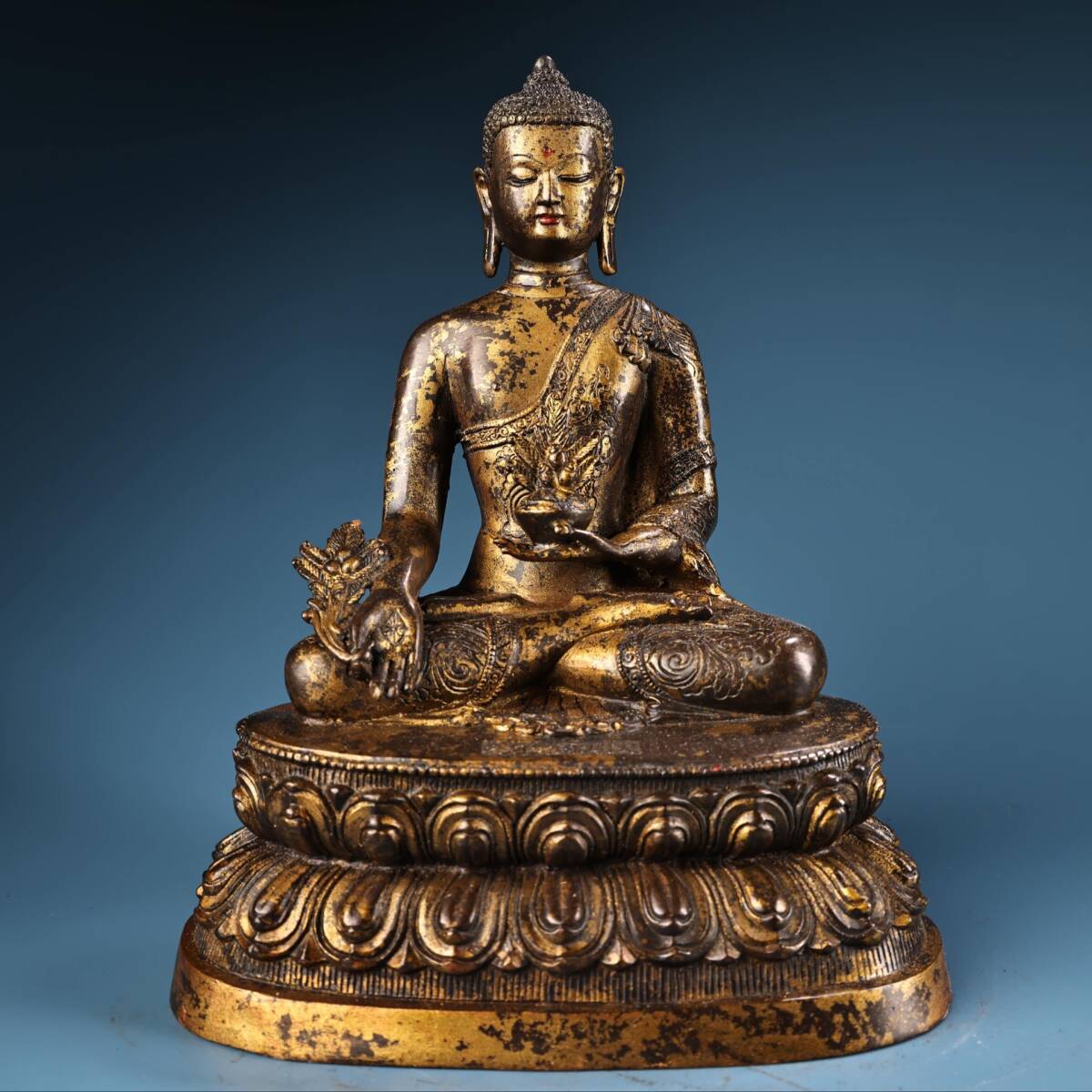 - ▽鴻▽ 銅製 泥金 藥師仏 仏像 宗教 仏教古美術 供養品 古賞物 古董品 時代物 稀少珍品 中国古玩 中国古美術