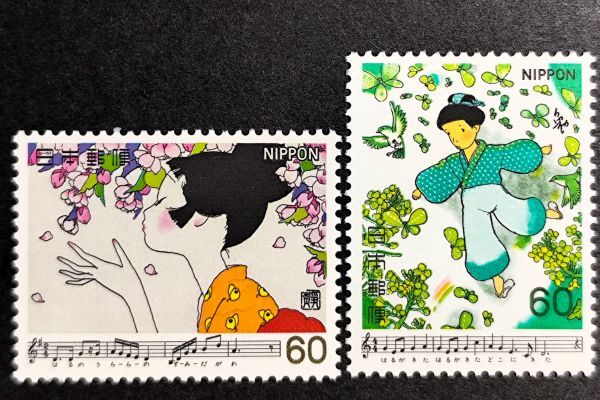 - [25072432]【日本の歌シリーズ・第9集】単片2種「花・春がきた」60円×2 1981年発行 美品