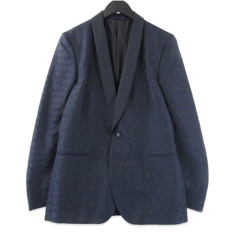 > 美品 PS Paul Smith ピーエス ポールスミス 筒袖テーラードジャケット PP-SL-48230 PALM TREE JACQUARD 16AW 1B ネイビー XL 18000718