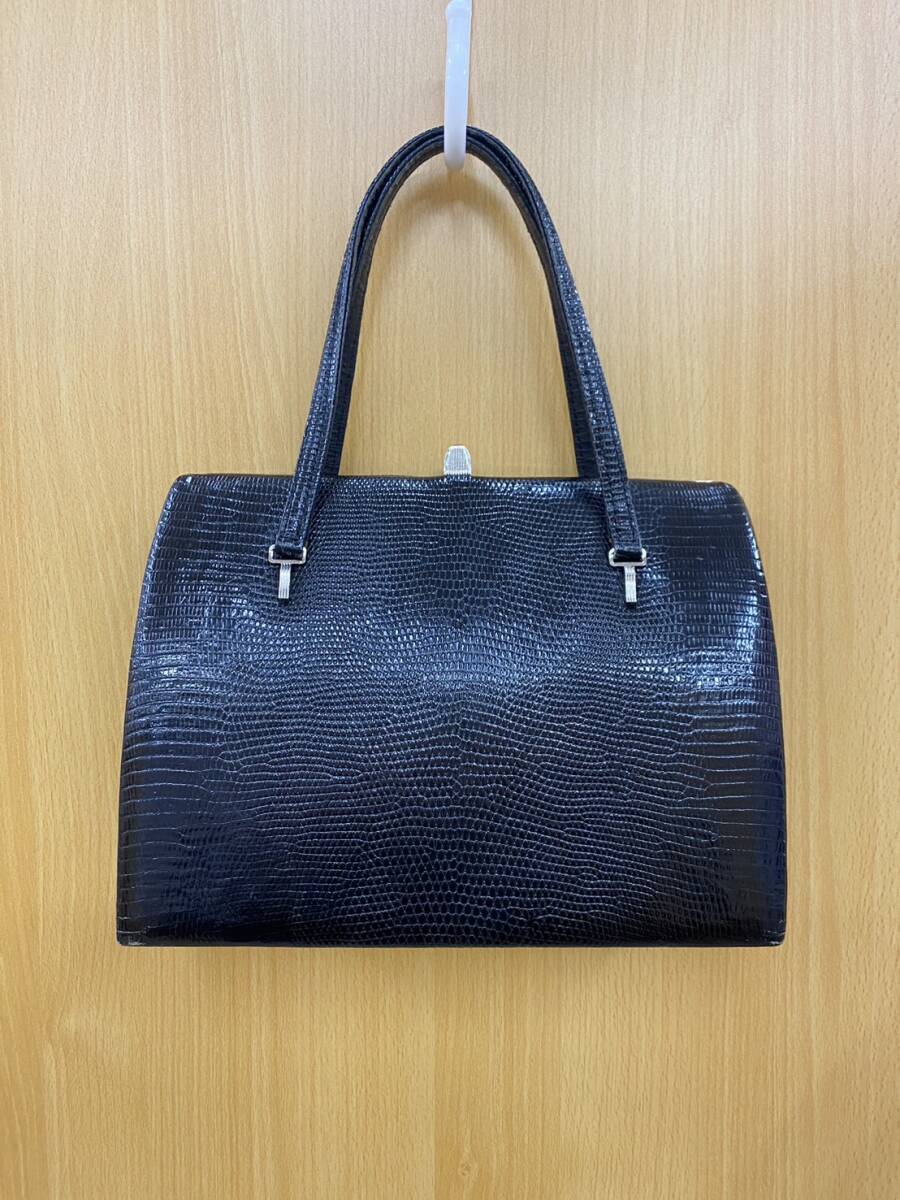 - ◎【定価17,200円】リザード トカゲ ハンドバッグ カバン 高級 本物 革 レザー カラー 黒 ブラック 銀 シルバー