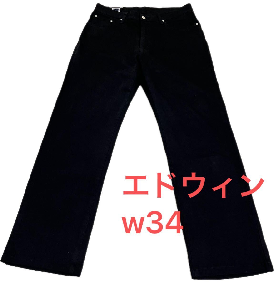 - 日本製 EDWIN エドウィン S403 レーヨン混 黒 ブラック系 ストレッチ パンツ w34 大きいサイズ