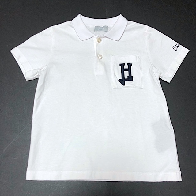 > ☆二点落札で送料無料!2A48 HERNO ヘルノ キッズ 半袖 ポロシャツ 白 6歳用 綿100% イタリア製 Hロゴ 男の子 女の子 ホワイト