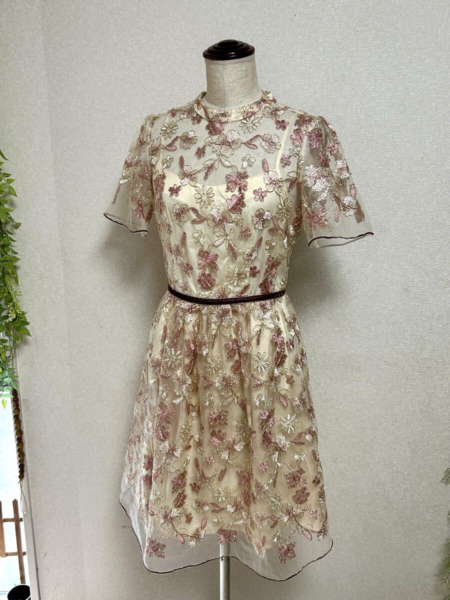 - 【 Lily Brown★リリーブラウン】花柄刺繍ワンピース・ゴールド糸仕様・光沢感・サイズ1