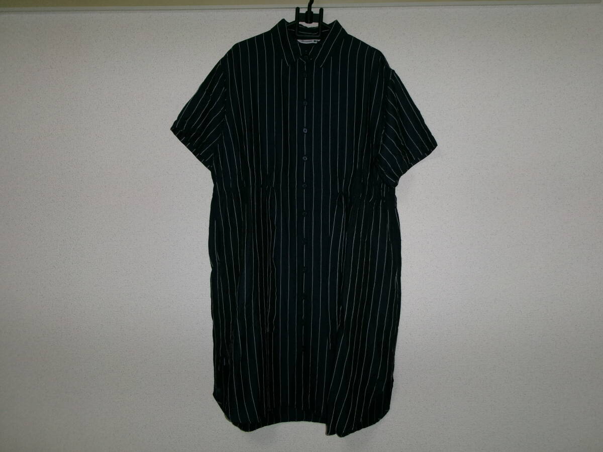 > UNIQLOユニクロ×JW ANDERSON JWアンダーソン☆ネイビー紺×白ストライプ柄半袖シャツチュニックワンピース☆ナチュラル♪麻混リネン素材 L