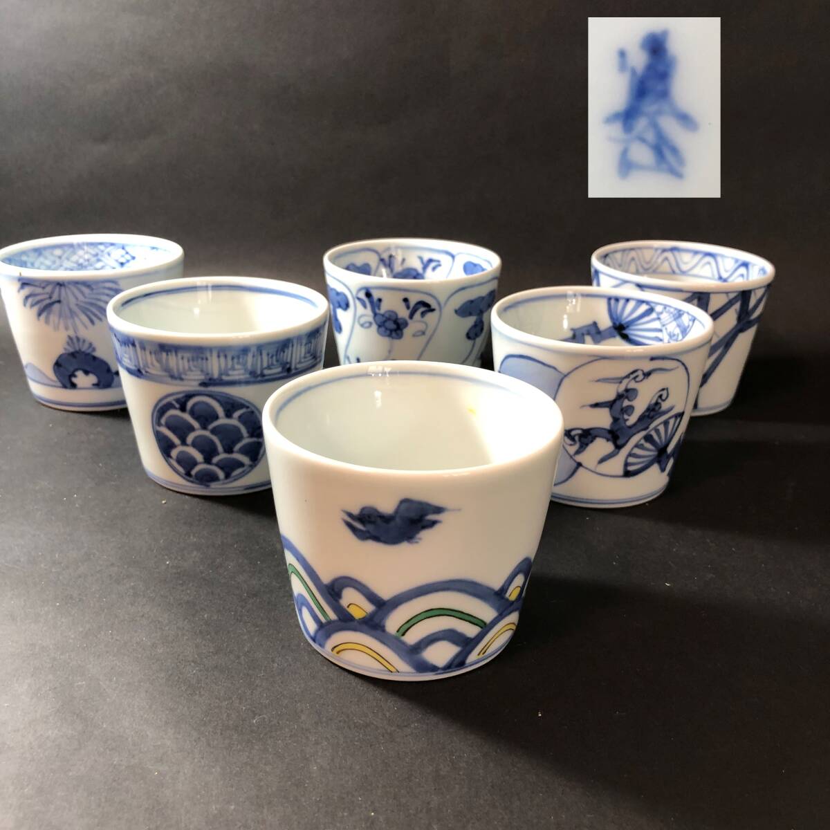 - 有田焼 蕎麦猪口 6種6客 図替わり 蕎麦猪口 向付 料理食器 和食器 懐石料理 テーブルコーディネート