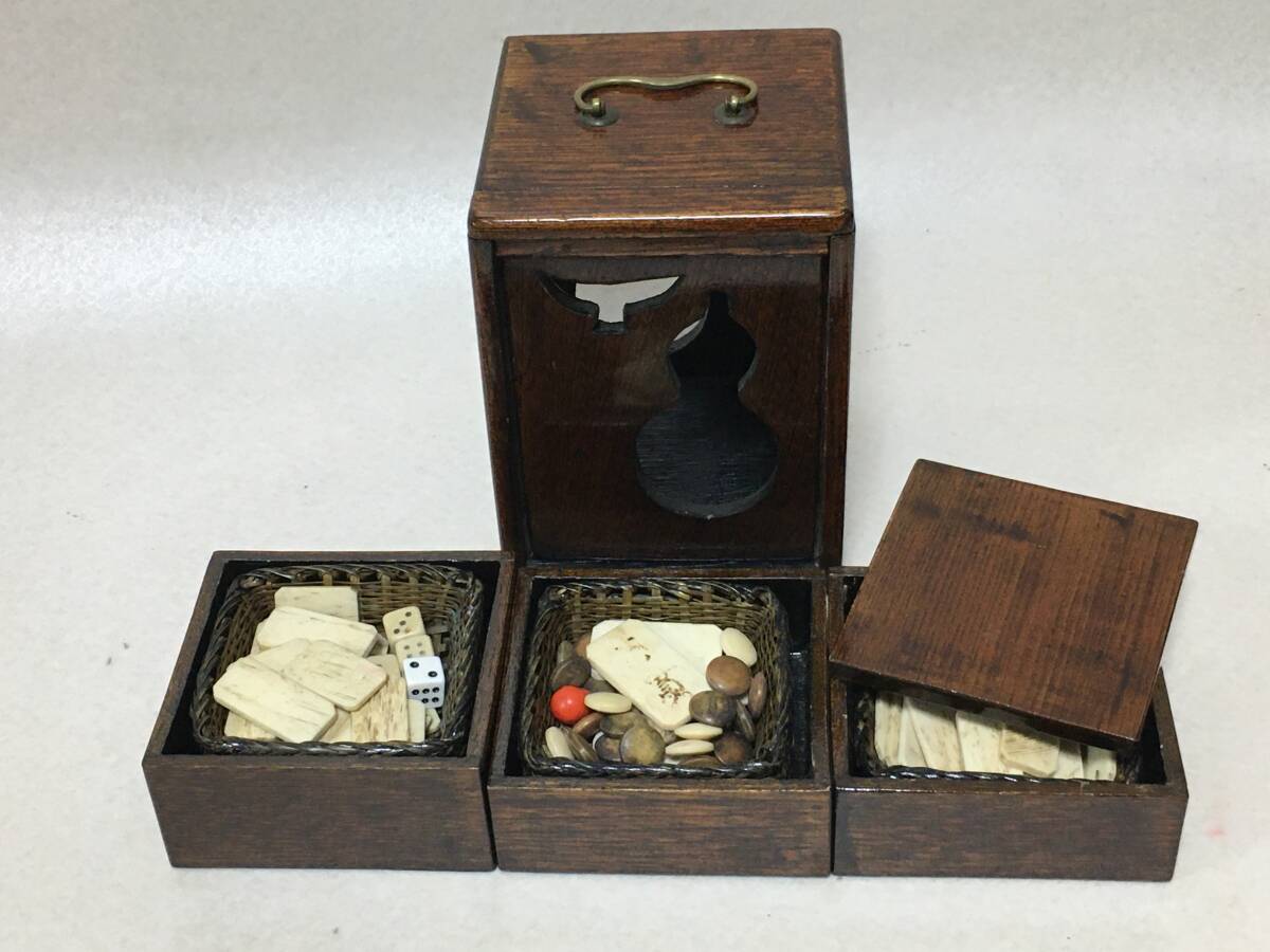- 【E166】八八花札セット 瓢箪透かし木箱 籠 アンティーク