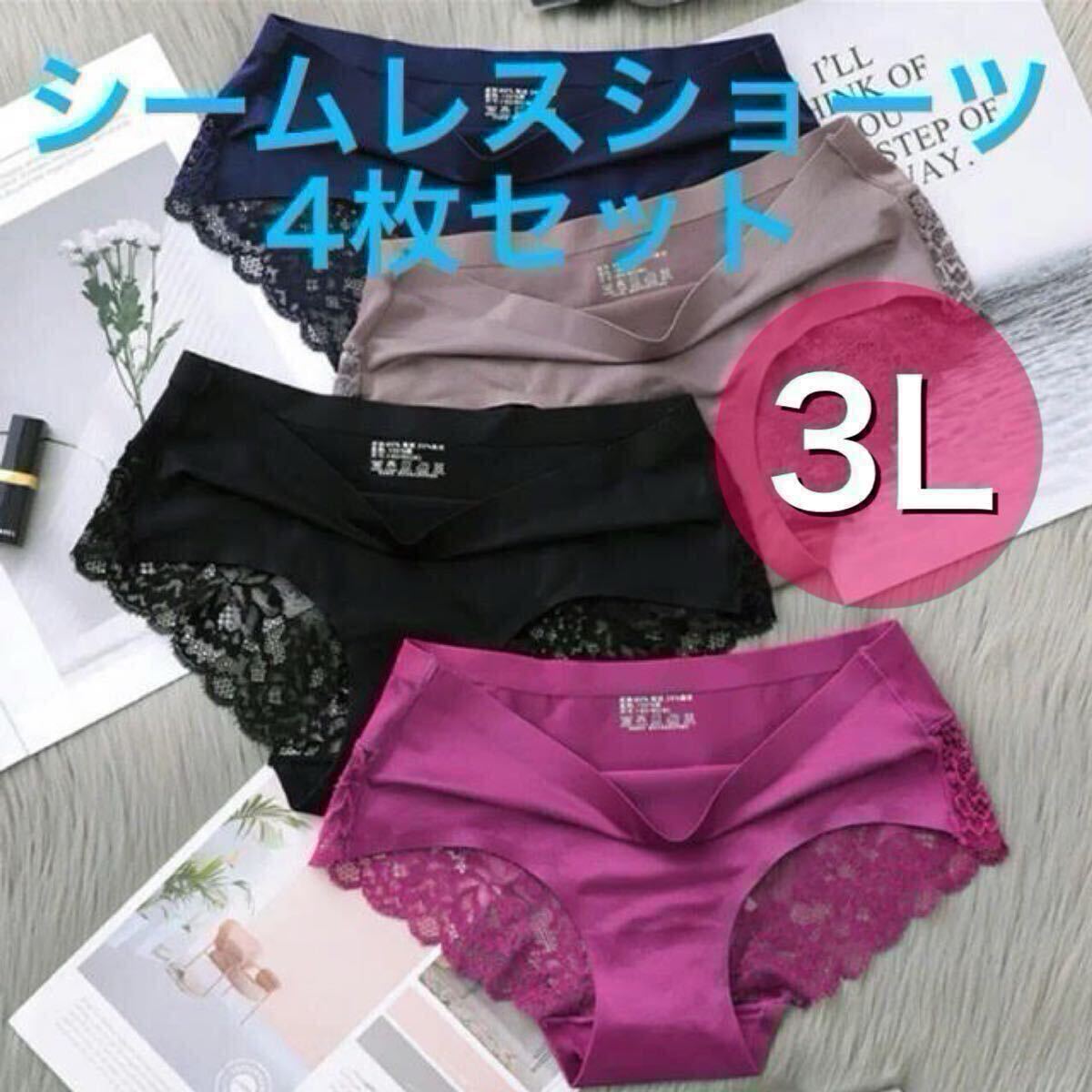 > シームレス レース ショーツ 光沢 4枚セット 3L セクシー レディース 下着 ブラック ブルー ブラウン 茶色 ワインレッド 赤 XXL 黒 青