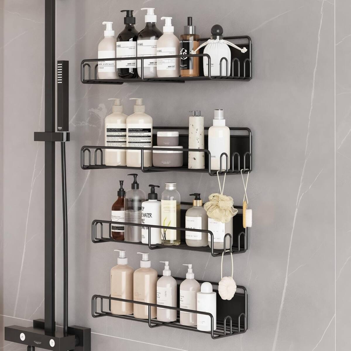 - 磁石でキレイ 工事不要 ごちゃつく浴室がスッキリ 壁面収納バスラック 浴室用ラック キッチンラック 4個セット