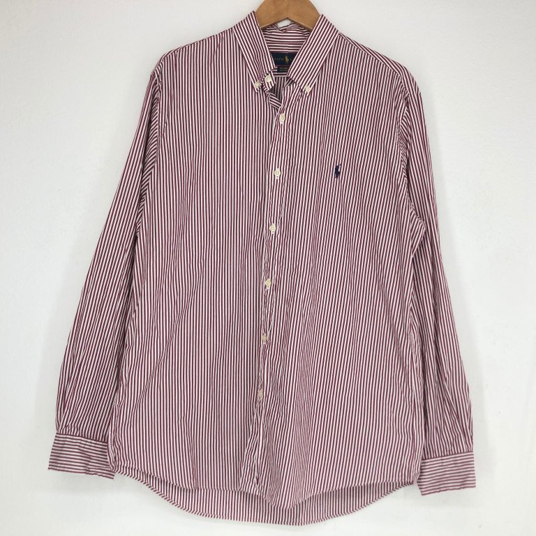 - POLO RALPH LAUREN ラルフローレン ストライプ柄 ボタンダウン 長袖 シャツ SIZE: L ワインレッド/ホワイト MH632025072706