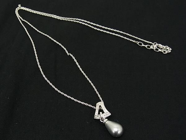 > ■美品■ NINA RICCI ニナリッチ ラインストーン パール ロング ネックレス ペンダント アクセサリー レディース シルバー系 DF4992