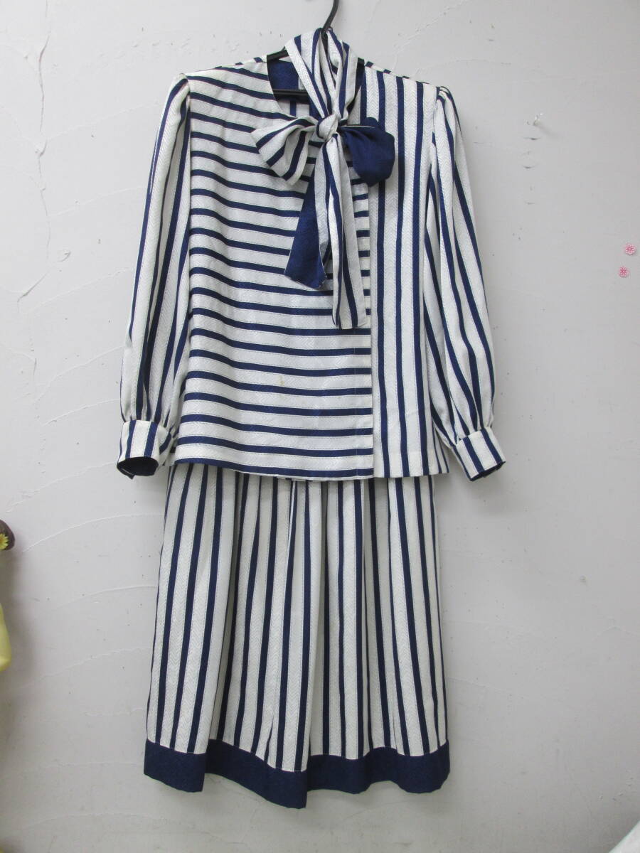 > (85)♪chalet blanc シャレブラン セットアップ スカート ジャケットブ サテン ネイビー×ホワイト サイズRL-11 ポリエステル100%