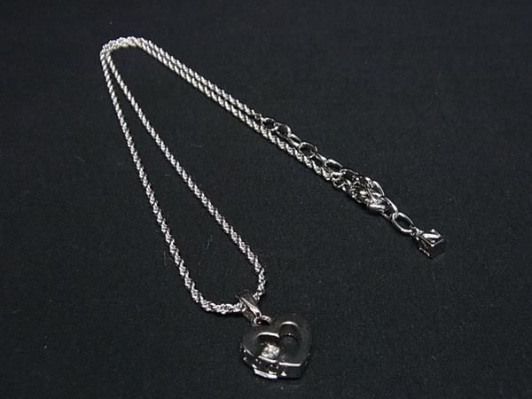 - ■美品■ NINA RICCI ニナリッチ ハートモチーフ ラインストーン ネックレス ペンダント アクセサリー シルバー系 DE5361