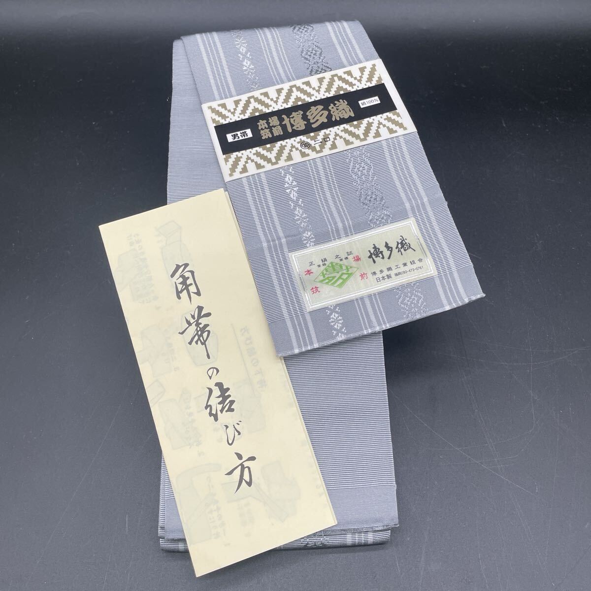 - 0190 博多織 本場筑前博多帯 男帯 絹100% 献上柄 グレー 帯