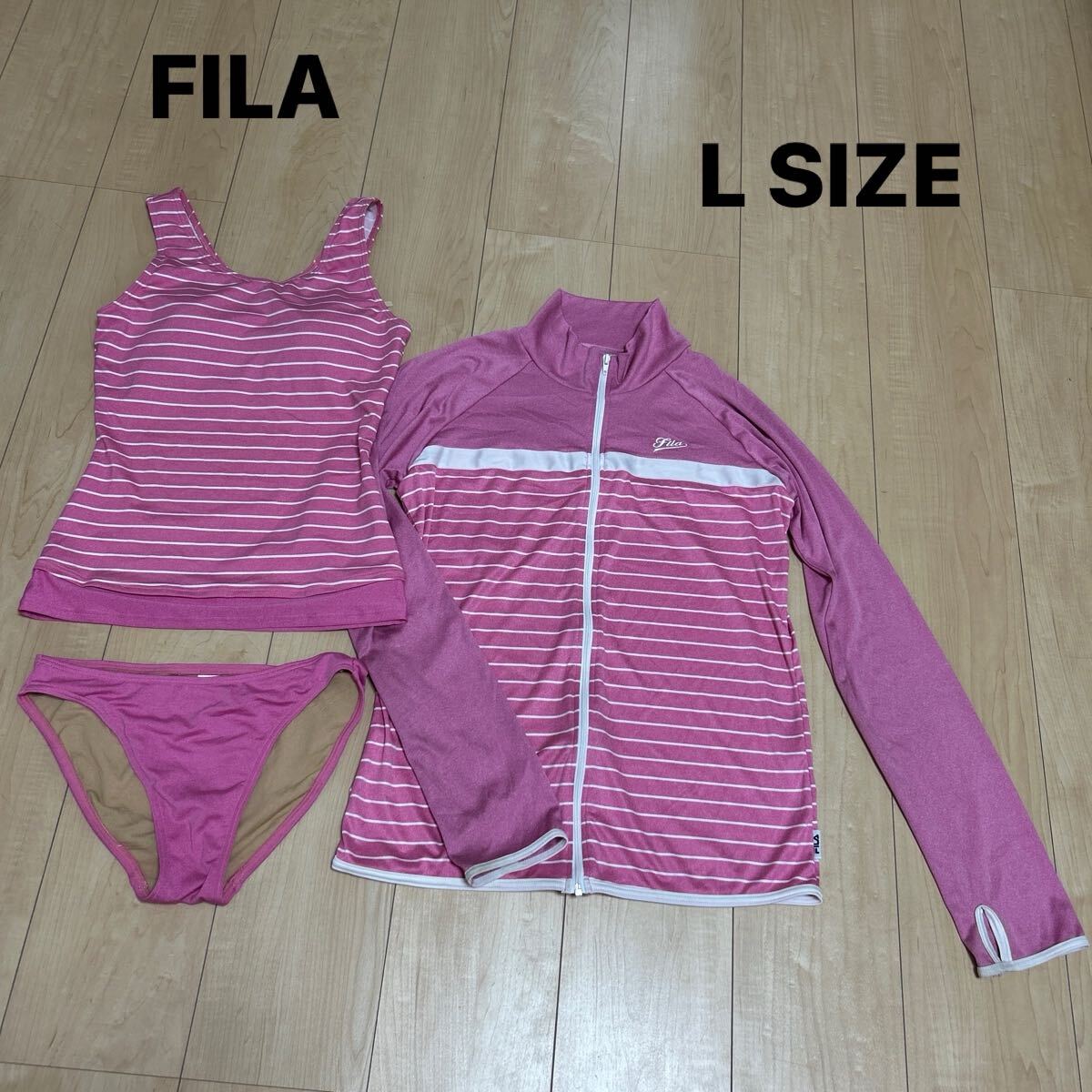 > FILA フィラ タンキニ ラッシュガード Lサイズ 水着 スイムウェア ピンク/ホワイト ボーダー 11号 海水浴 プール 3点セット