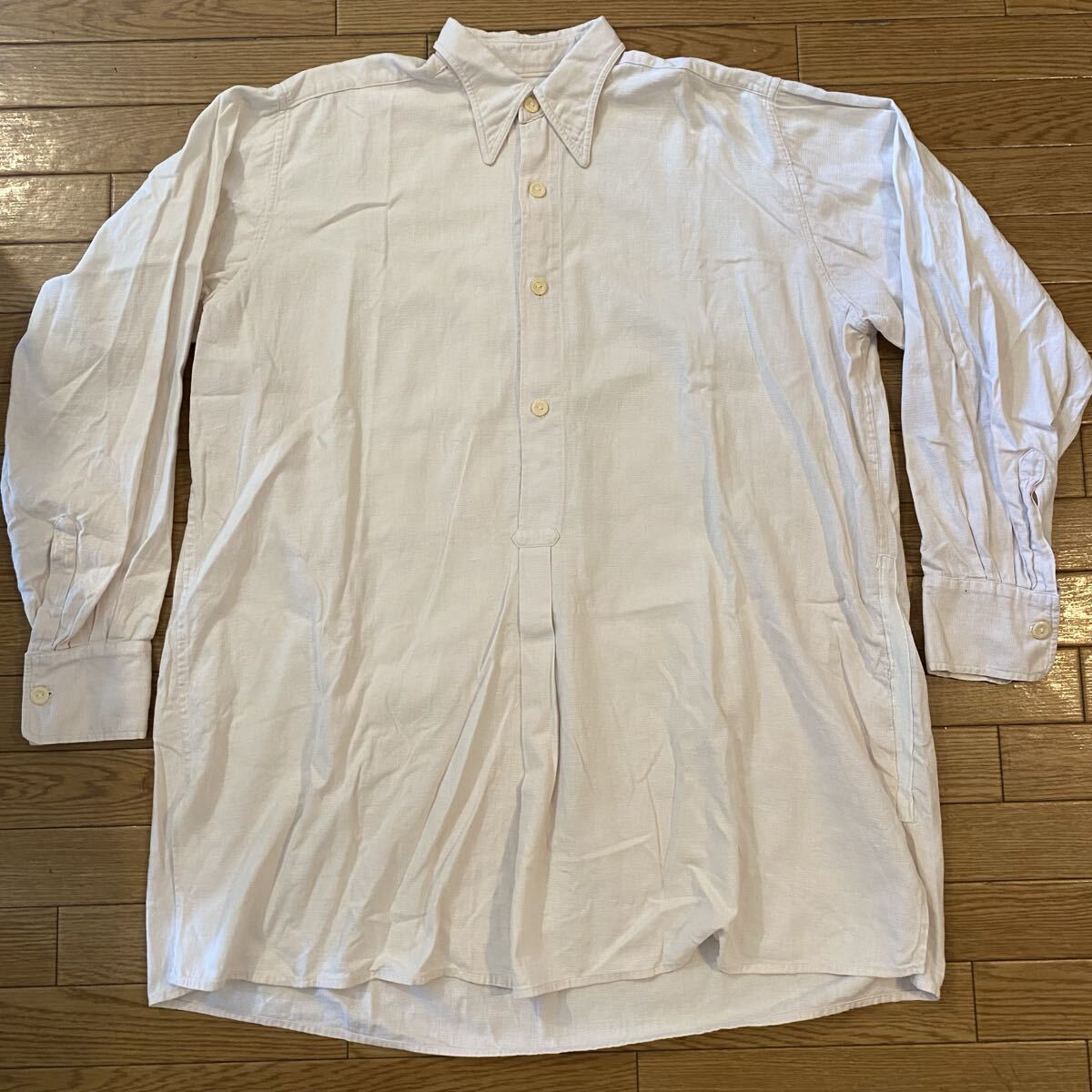 - フランス ヴィンテージ グランパシャツ ワンピース ユーロ古着 ギャルソン 長袖 ホワイト 白 生成り チュニック ビンテージ プルオーバー