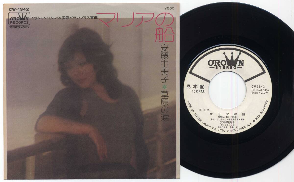 - シングル★安藤由美子/マリアの船(見本白/CROWN,CW-1342,¥500,'73)★ando yumikoヴァイオレッツ/PROMO WHITE LABEL/シャンソンchanson