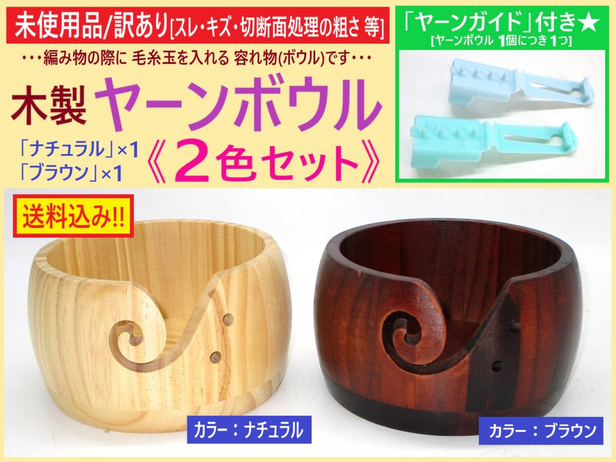 - 訳あり 未使用 木製 ヤーン ボウル 2色セット A ヤーンガイド付き ナチュラル ブラウン 直径15cm 毛糸 玉 入れ ニット ボール 海外製 キズ
