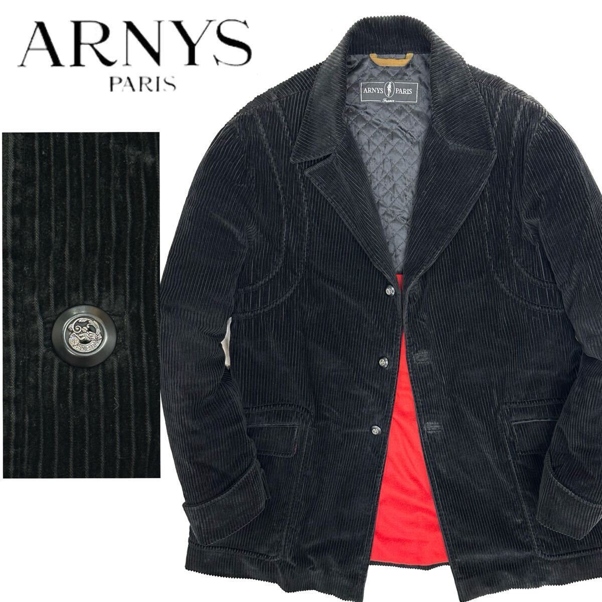 > フランス製 vintage ARNYS PARIS コットン100% 柔らかい ベロア コーデュロイ コート(48)ブラック 黒 アウター メンズ アルニス