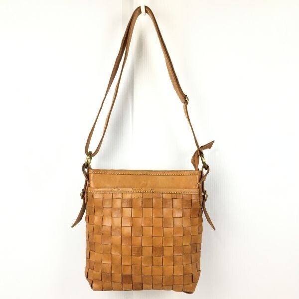 - ハンドメイド/編み本革☆レザーメッシュ/ショルダーバッグ☆キャメル/茶/ブラウン☆管NO.XB1-64