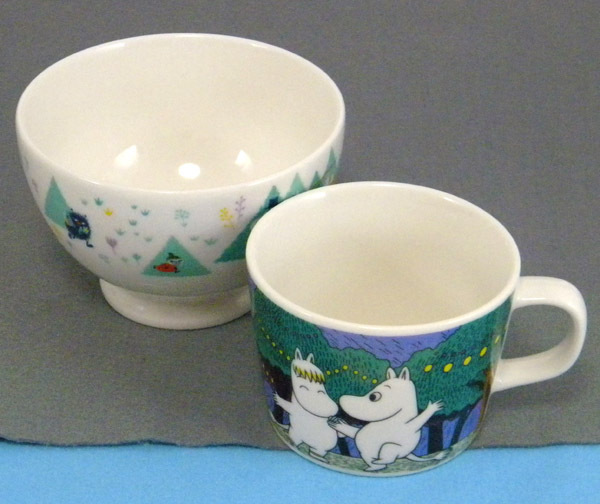 > ★ MOOMIN ムーミン 食器セット 2点 ★ スープマグ マグカップ(サークルK)& カフェボウル(一番くじ) / 陶器製 非売品