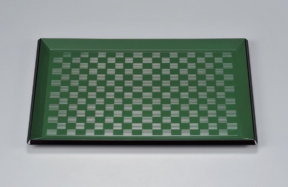 - つるぎ市松長手盆 グリーン市松 尺3寸 ABS樹脂製 日本製 越前漆器