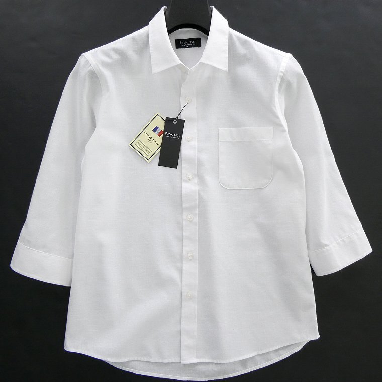 - 新品 ファビオフラーティ 25年春夏 フレンチ リネン 七分袖 シャツ M 白【ff7m-h303_WT】 FABIO FRATI 麻 綿 無地 七分丈 メンズ