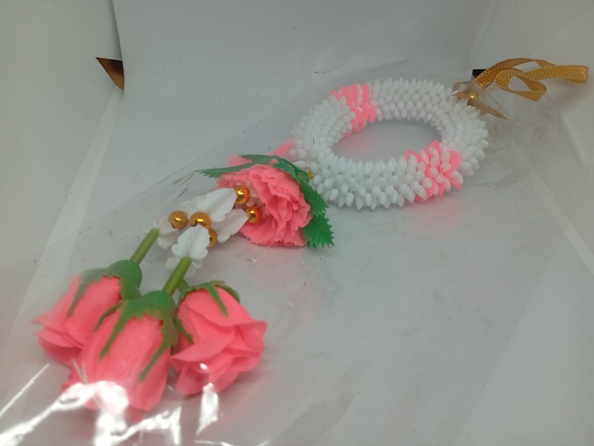 - ②タイのお守り プアンマーライ ピンク 花飾り 造花 幸運祈願 仏壇 自動車安全祈願 タイランド バンコク パタヤ プーケット