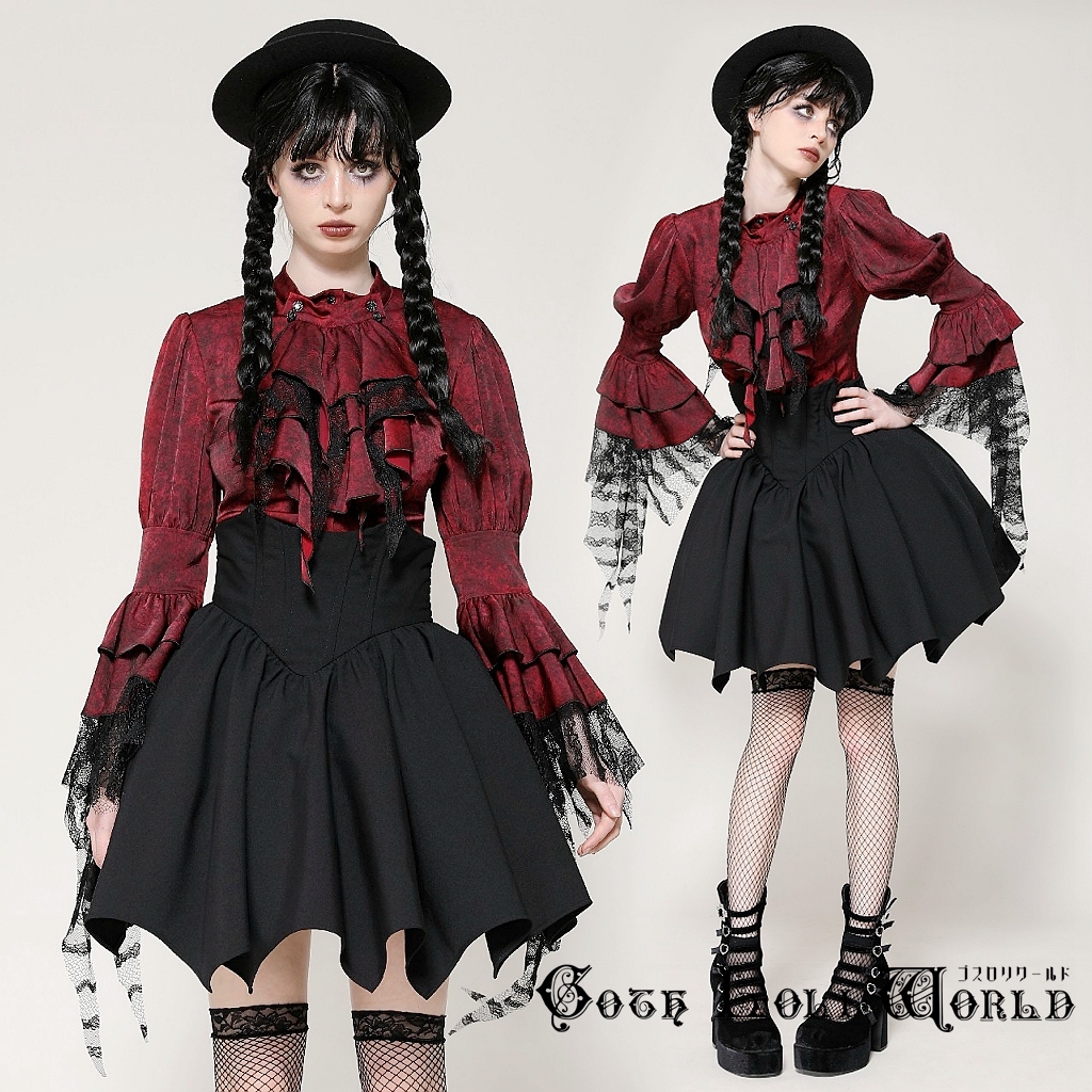 - 即納 IW119-L ワインレッド ラッフルジャボ ブラウス ファッション ゴシック ゴスロリ ビジュアル系 ヴィジュアル系 V系 モード系 地雷系