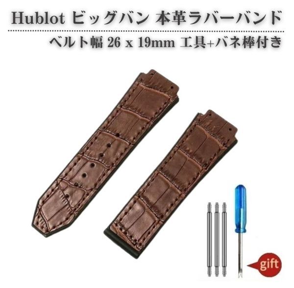 - Hublot ウブロ ビッグバン 44mm ケース用 26x19mm 本革 レザー + ラバー 時計 バンド 腕時計 社外品 H型ドライバーセット ブラウン WB016