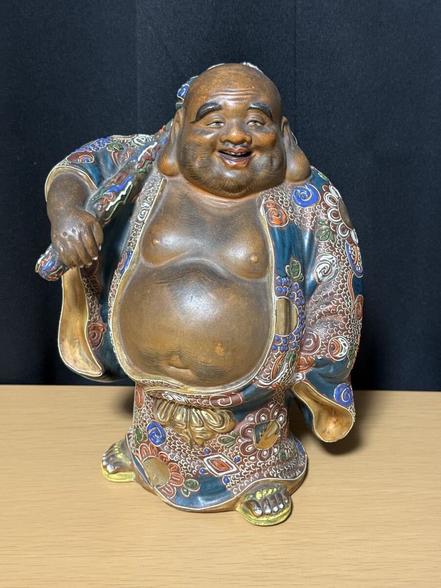 - 【送料込み】九谷焼 色絵 金彩 布袋 布袋尊 高さ約22cm 魔除け 招福 縁起物 骨董品 古玩 置物