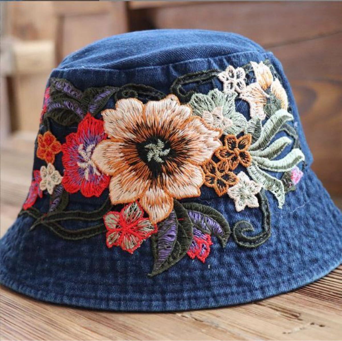 - 【トレンド】デニム バケットハット 花柄刺繍 春夏 おしゃれ 一点物 アウトドア