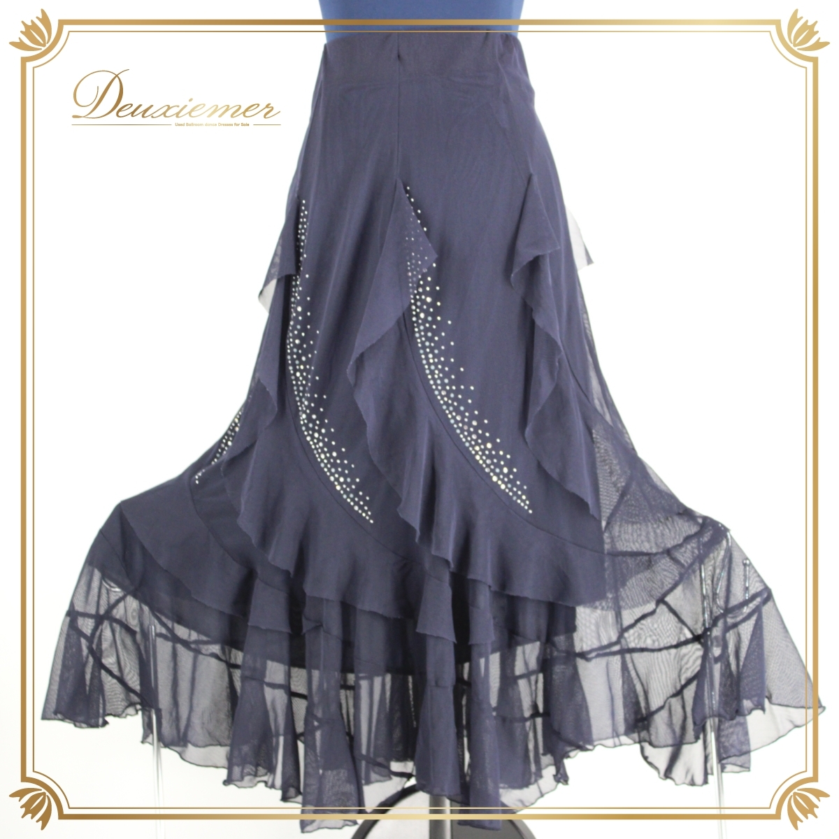 - 社交ダンス 衣装 スカート スタンダード レッスンウェア ICHIOKU イチオク 練習着 ラインストーン 無地 シンプル ネイビー系 紺